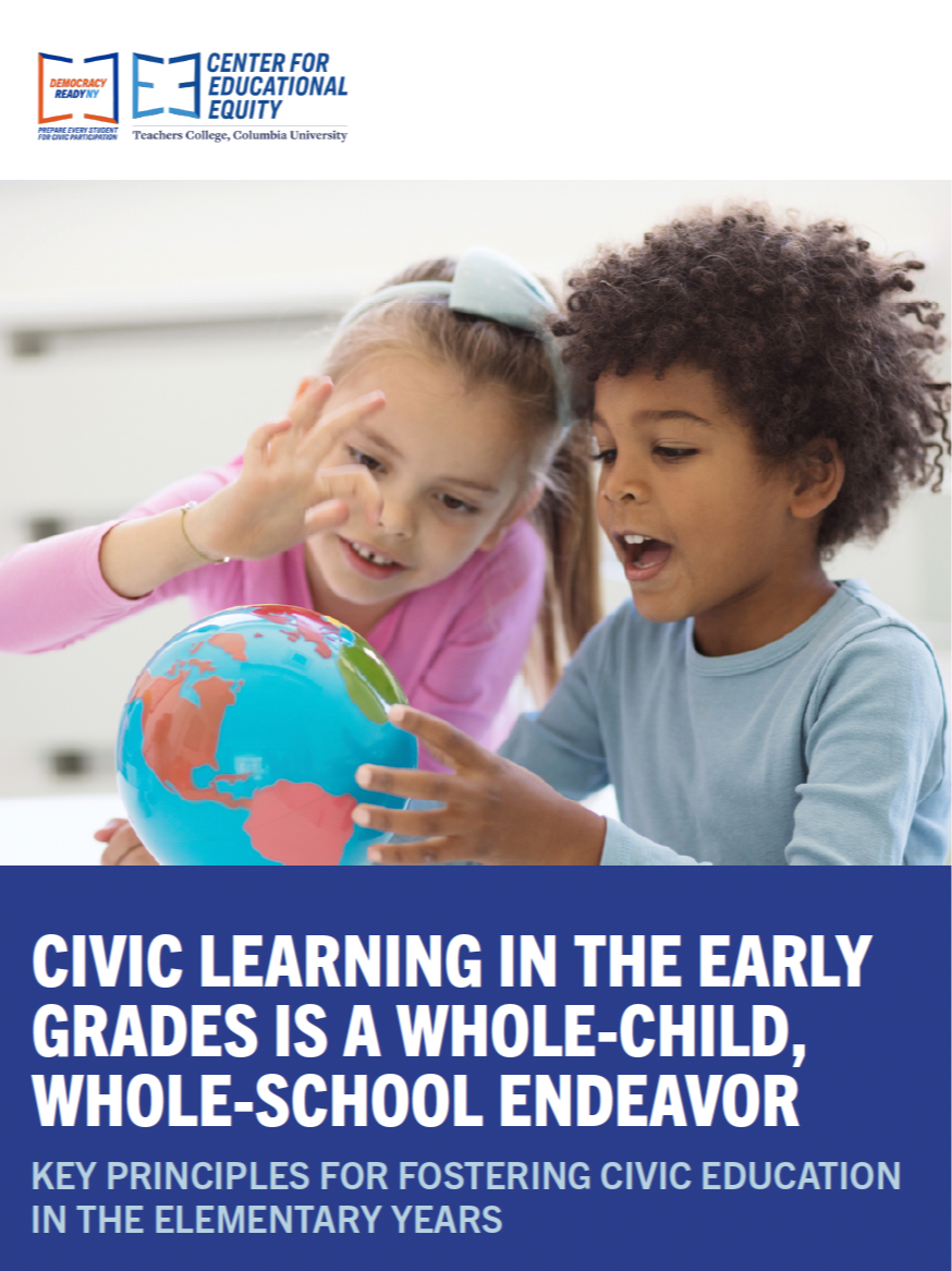Civic Learning in the Early Grades explores how learn civic lessons are learned by children, not just from their teachers, but all points of contact in school. The foundation for civics for younger students is about socialization and engagement in community. Kids crave positive connections, a gateway to civic learning.
