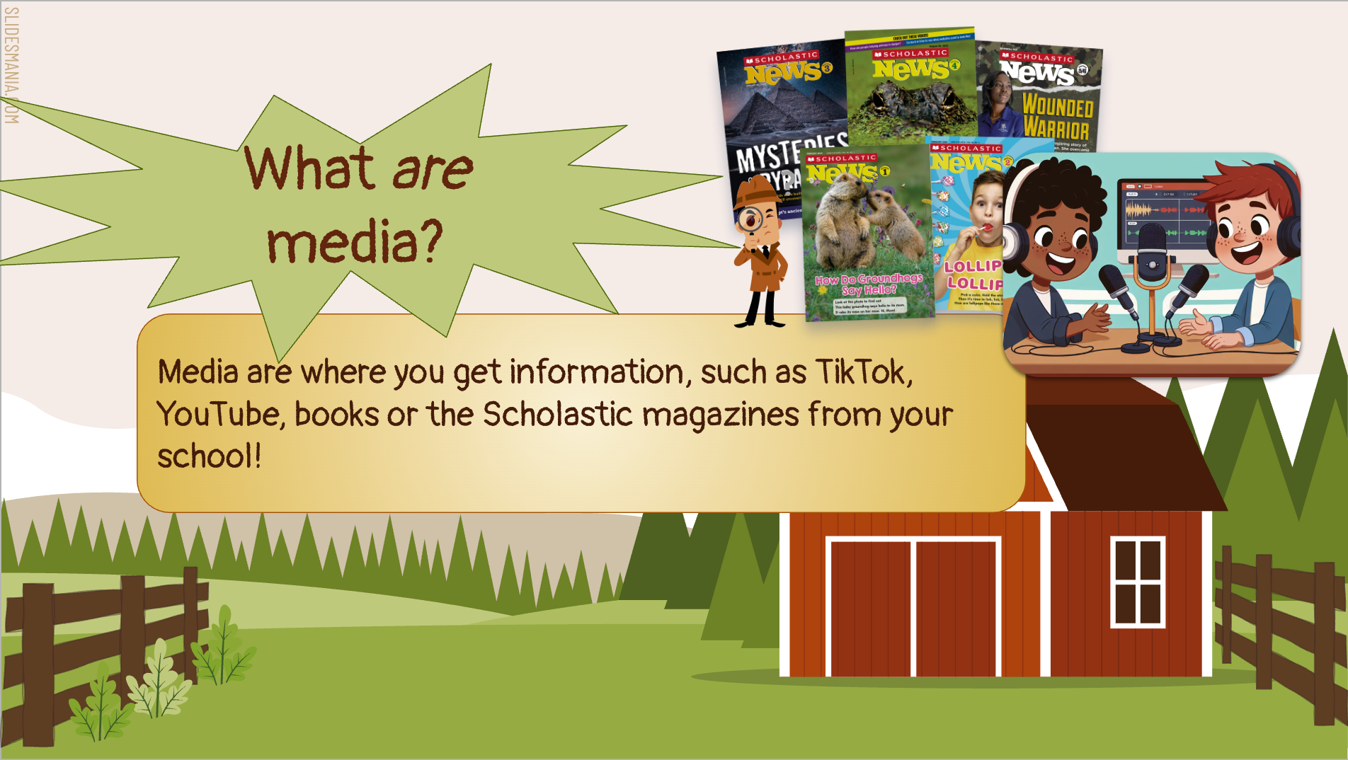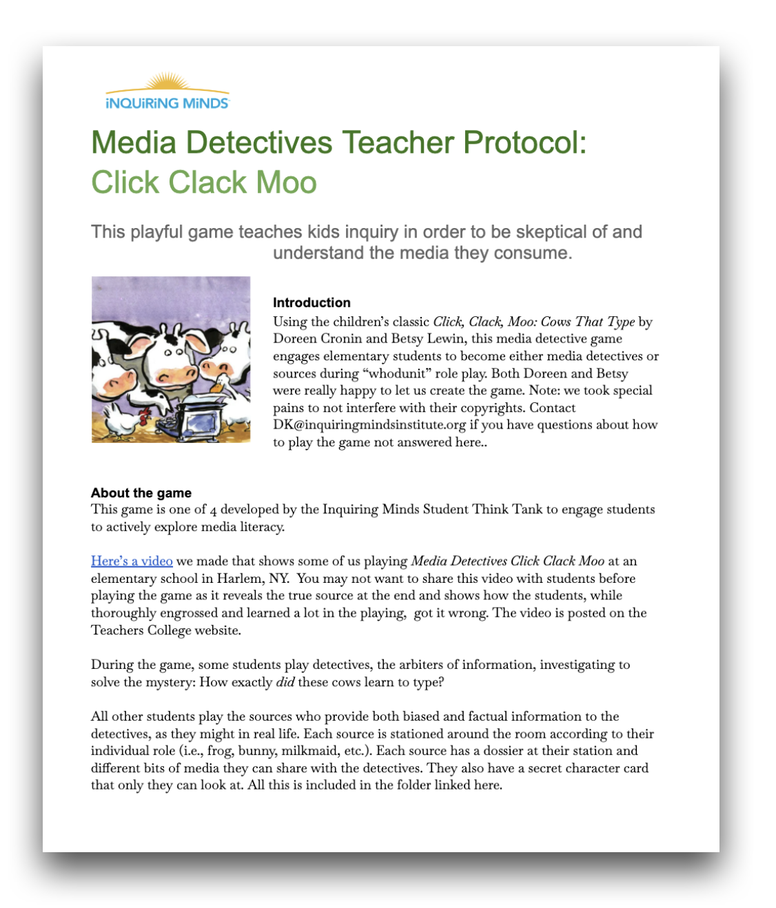 From the slideshow: Below 2 of the 13 slides include a read aloud of Click Clack Moo plus students get a primer on media literacy and how to ask good questions.